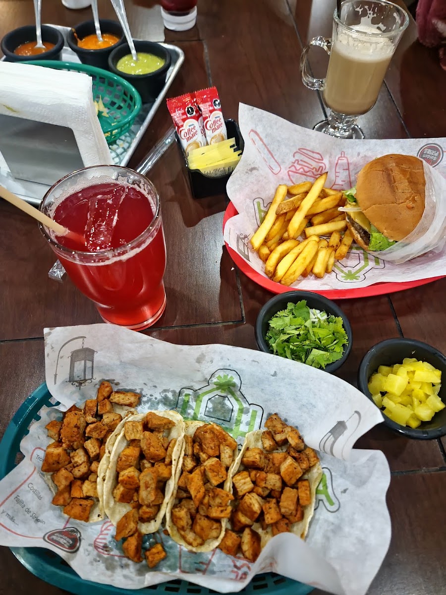 El lugar me parece es nuevo, pero les falta un poco de atención a mi parecer. La comida se tardaron en llevarla a pesar que solo había otra mesa de clientes y yo pedí un tipo de hamburguesa y no me la llevaron correcta, las papas estaban muy duras, estaban sobrefritas, la hamburguesa estaba buena pero no tenía aros de cebolla ni bbq. Puede mejorar el lugar